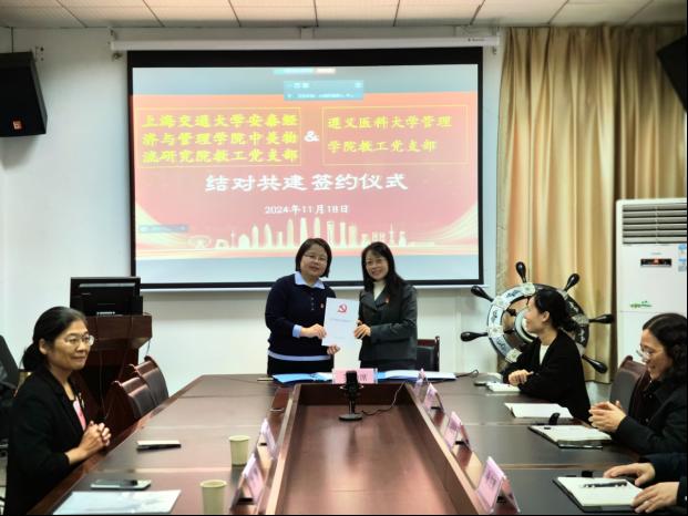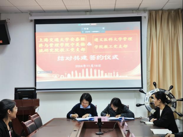 为深入学习贯彻习近平总书记关于党的建设的重要思想,全面巩固拓展学习贯彻习近平新时代中国特色社会主义思想主题教育成果,加强基层党组织之间的交流与合作,共同探索党建工作新思路、新方法,以高质量党建引领公司高质量发展,11月18日上午,公司教工党支部与上海交通大学安泰经济与tyc5997太阳集团中美物流研究院教工党支部在tyc5997太阳集团二楼会议室开展了结对共建签约仪式,仪式由tyc5997太阳集团管理公司党委书记张文辉主持,公司教工党支部和中美物流研究院教工党支部的教工党员们分别通过线下和线上的形式参加了签约仪式。