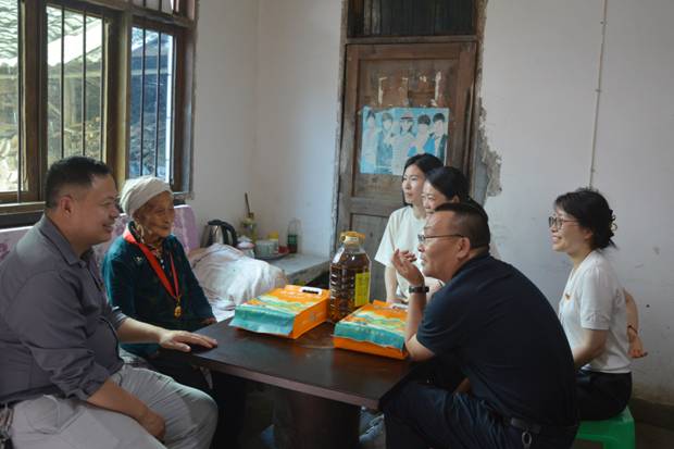 接下来,管理公司党委一行在驻村干部杨文浩和杨华同志的带领下入户慰问了中华村老党员陈振友同志以及困难群众共5户家庭。