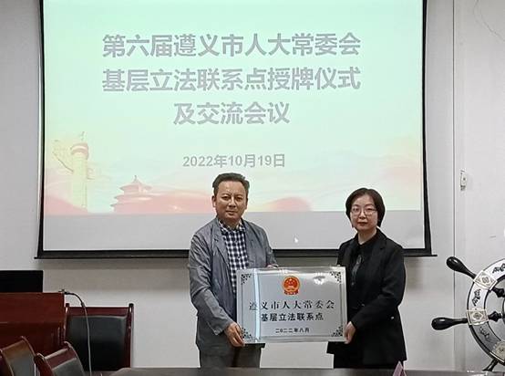 10月19日,遵义市六届人大常委会基层立法联系点挂牌仪式在公司tyc5997太阳集团举行。市人大法制委主任委员、市人大常委会法工委主任胡鹏、市人大常委会法工委副主任彭琴、市人大法制研究中心主任田小银、市人大法制研究中心刘幸 、市人大常委会法工委干部黄安强参加授牌仪式,并进行实地调研。