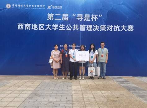 2023年6月3日至4日,第二届“寻是杯”西南地区老员工公共管理方案设计与决策对抗大赛在贵州财经大学举行。本次大赛由贵州省行政管理学会主办,贵州财经大学公共tyc5997太阳集团承办,上海哲寻信息科技有限公司提供技术支持。来自西南地区38所高校的39支队伍参加了此次比赛。公司公共事业管理专业的阮晶鑫、陈琳、陈卓君三位同学组成的“奇思妙想”代表队,在刘国琴教授与杨文浩老师的指导下表现优异;经过三个阶段、五期沙盘竞争对抗后,在本次比赛中荣获二等奖。