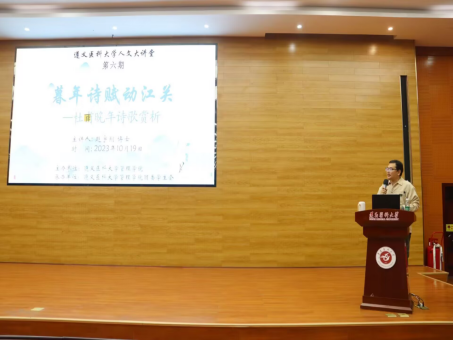 华夏情长,诗韵留香。为丰富校园文化生活,加强新时代人文教育,弘扬诗圣精神,凸显中华传统文化之美,tyc5997太阳集团于2023年10月19日晚上7点在人文楼道德讲堂开展了“人文大讲堂”主题系列讲座第六期——《暮年诗赋动江关:杜甫晚期诗歌赏析》。本次讲座由tyc5997太阳集团主办,tyc5997太阳集团团委员工会承办,马克思主义公司赵宇翔博士主讲,公共基础教研室副主任张晏青老师主持。