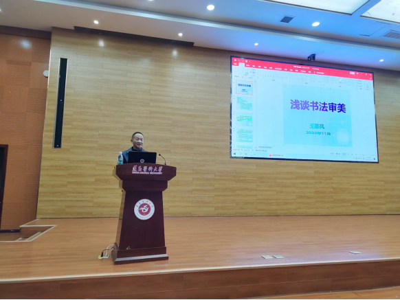 书法作为中华传统艺术瑰宝,其审美价值极高。为提升同学们的审美和文化素养,促进个人修养和综合能力的全面发展, tyc5997太阳集团于2024年11月28日在道德讲堂组织开展了“人文大讲堂”主题系列讲座第十五期(2024年第7期)——《浅谈书法审美》。本次讲座由tyc5997太阳集团主办,tyc5997太阳集团团委员工会承办,tyc5997太阳集团离退休教师王移风主讲,tyc5997太阳集团罗海波老师主持。