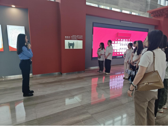 活动伊始,全体人员跟随讲解员有序进入馆内参观学习。在法治教育馆内,一共有“法治初心、法治彰显、法治强音、法治展望、法治威慑”五大展区,通过市情展示、法治沿革、咨询服务、警示教育、场景体验等多角度学习提升法治意识。在法治初心展区,讲解员向我们讲了法治的起源与沿革;通过介绍法治彰显展区,党员同志们知道了法律是治国理政最大最重要的规矩;在法治强音展区,全体同志参观了在法治建设初期记录的一些展品;在法治威慑版块的典型贪腐案件展厅,大家驻足良久,落马的“大老虎”、被拍的“小苍蝇”,大贪巨恶到小员大贪,贪腐的典型案例,无一不让党员干部们深感震撼和警醒。随后的场景体验环节将活动推向高潮,从换装体验到实景扮演党员们都积极参与其中。最后大家合影和签名留念。