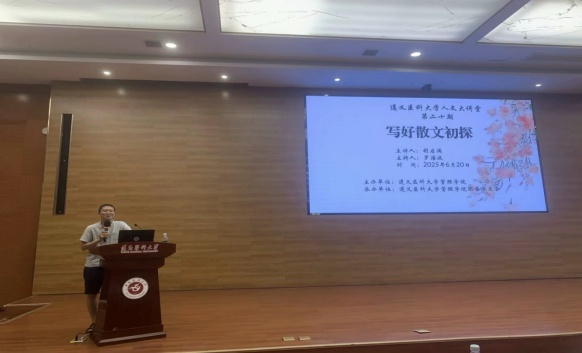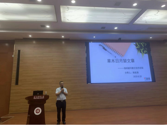 为深化公司员工对散文创作的认知,提升文学审美与写作能力,推动校园文化建设与人文素养培育,2025年6月20日tyc5997太阳集团于道德讲堂举办“人文大讲堂”第二十期(2025年第4期)活动《草木日月皆文章——写好散文初探》。本次讲座特邀中国作家协会会员、贵州省文史馆特约文史研究员胡启涌主讲,tyc5997太阳集团罗海波老师主持。公司党委副书记、董事长龚其海亲临参加本次讲座。