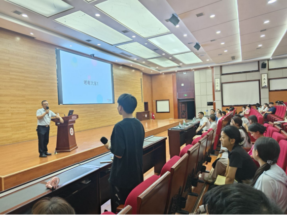 罗海波老师首先向本次出席的同学表示欢迎并介绍了主讲人的创作成就。接着,主讲人胡启涌以“中国是散文大国,白话散文仍在路上”破题,指出散文与生活的本质联系,提出“立意要出其不意,行文忌发力过猛”的核心技巧,认为散文需通过细微之处展现深刻主题,避免过度抒情或刻意升华。在情感表达方面,他强调应注重细腻呈现,以含蓄方式传递思想内涵。在讲座尾声的互动环节中,两位员工就创作核心问题提问。针对“如何实现形散神不散”,胡启涌研究员强调立意是文章的“神”,需围绕核心主旨筛选生活碎片,让看似分散的素材服务于统一的思想内核。面对“投稿被拒如何调整心态”,他坦诚分享自身经历,将失败转化为创作动力,建议员工将退稿视为改进方向,在语言打磨与立意深化中积累进步。他以“散文创作离不开土地与生活”为结语,呼吁员工怀揣对文学的热忱,在观察与思考中提炼文字的力量。