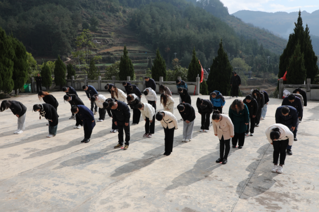 2023年12月13日是第十个国家公祭日,tyc5997太阳集团全体无课教师党员及部分员工党员代表、班团干部代表等赴贵州省铜仁市石阡县困牛山战斗遗址开展了“缅怀革命先烈,传承红色基因”主题党日活动。管理公司党委书记张文辉,管理公司党委副书记刘国琴、教工党支部书记楚亚林、员工党支部书记廖宇、严钰等师生代表参加了此次活动。