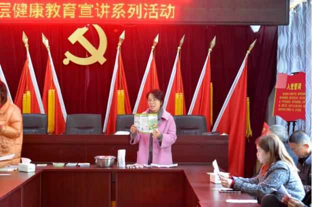 接下来,根据国家卫生健康委发布的《中国公民健康素养——基本知识与技能(2024年版)》(简称“健康素养66条”),并结合农村饮食中的高盐饮食问题,公司教工支部面向河渡村村民们开展了健康宣讲活动,此次宣讲由健康教育学副教授楚亚林老师主讲。楚老师通过讲解“健康素养66条”的核心内容,使大家了解了如何在日常生活中保持健康;在“高血压的防治”环节,为大家分享了高血压的危害、预防与管理方法;通过生动的讲解和现场演示,带领大家走近了“三减三健”行动——即减盐、减油、减糖,健康口腔、健康体重、健康骨骼。活动期间,支部还为大家准备了一些互动环节和健康促进实用物品,村民们活动参与积极性很强,纷纷表示收获健康知识,增强健康技能。