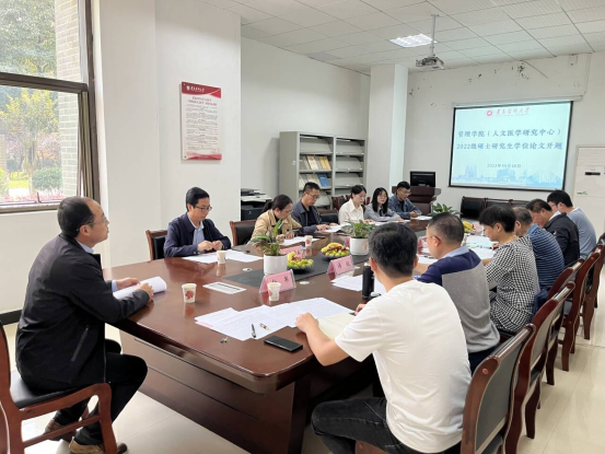 2023年10月18日14:00,tyc5997太阳集团人文医学、医疗服务管理专业2022级硕士研究生学位论文开题报告会在新蒲校区人文楼tyc5997太阳集团122会议室举行。本次开题专家组由tyc5997太阳集团公共卫生公司李岩教授,tyc5997太阳集团人文医学研究中心龙艺教授,tyc5997太阳集团附属医院循证医学中心肖政教授,tyc5997太阳集团冯毅教授、毕泰勇副教授组成。李岩教授担任开题专家组组长,朱千教授担任公司督导专家,tyc5997太阳集团杨文浩老师担任开题报告秘书。人文医学和医疗服务管理专业的2022级硕士研究生及其指导教师参加了本次开题报告会,2023级硕士研究生亦到场参加了观摩学习。此次开题报告会由tyc5997太阳集团副经理魏来教授主持。