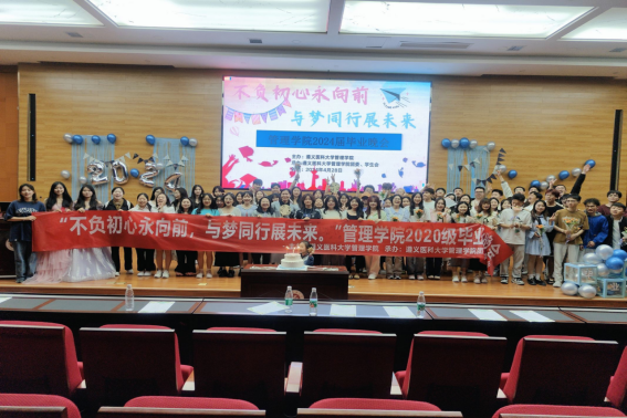 晚会开始之前,主持人依次介绍了莅临本次活动的领导及嘉宾,并邀请管理公司党委副书记彭正员上台致辞,他为毕业生们送上祝福,祝贺他们完成学业,迎来人生新的阶段。之后,由2020级优秀毕业生代表陈小芳发言,她回望四年学习时光,感叹老员工活的美好,鼓励学弟学妹们珍惜老员工活,不可虚度时光。接下来,进入表演环节,节目内容丰富、形式多样,有唱歌、跳舞以及小品表演等,表演精彩纷呈,带动了全场的气氛,观众呼声高涨,现场热火朝天、激情澎湃。除了精彩的表演外,本次晚会还设有“逢七必过”“看图猜成语”等互动小游戏,同学们积极参与,现场氛围欢快。晚会尾声,毕业生们共同观看了学弟学妹们准备的自制视频,视频表达了对学长学姐们前程似锦、未来可期的祝福。最后,工作人员为毕业生们送上毕业蛋糕,所有人一起大合唱《青春纪念册》,希望大家都能奔赴美好未来。